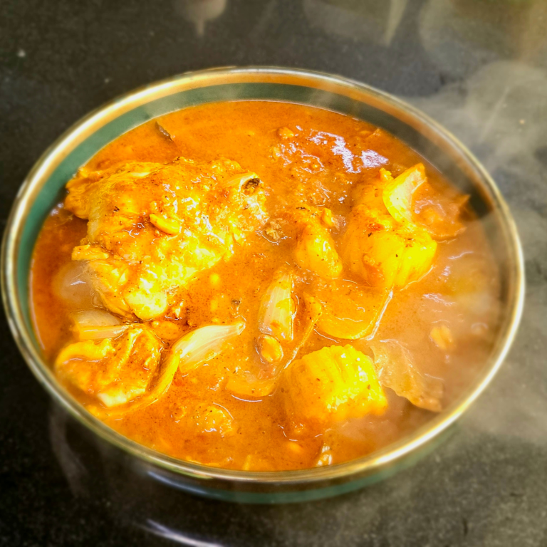 A Spicy dish originating in India and Southeast Asia, made with meat, fish or vegetables cooked in a sauce of strong spices.